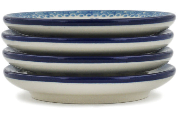 This Polish Pottery 4" Set of 4 Coasters - Boo Boo Kitty Paws is handmade and handpainted by the Ceramika Artystyczna factory in Boleslawiec, Poland.