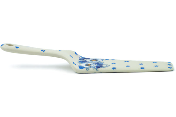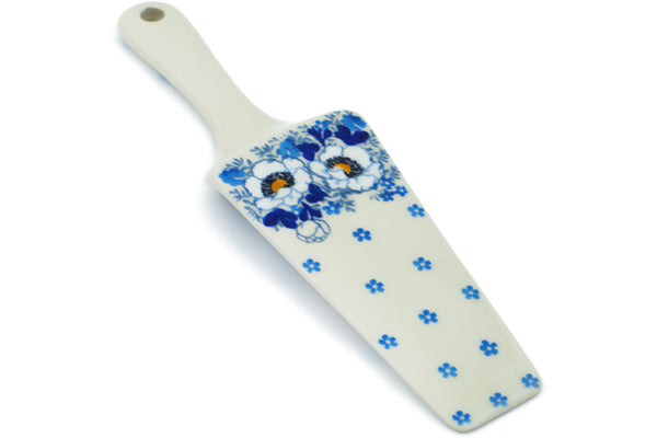 This Polish Pottery 10" Pie and Cake Server - Blue Spring is handmade and handpainted by the Ceramika Artystyczna factory in Boleslawiec, Poland.