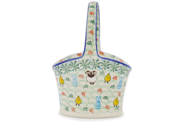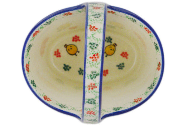 This Polish Pottery 7" Basket with Handle - U5194 is handmade and handpainted by the Ceramika Artystyczna factory in Boleslawiec, Poland.