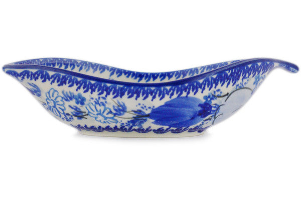 This Polish Pottery 6" Condiment Dish - Blue Wildflower Patch is handmade and handpainted by the Ceramika Artystyczna factory in Boleslawiec, Poland.