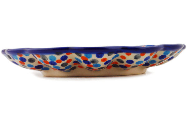 This Polish Pottery 8" Egg Plate - Polka Dot Frenzy is handmade and handpainted by the Ceramika Bona factory in Boleslawiec, Poland.