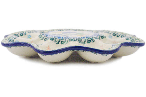 This Polish Pottery 9" Egg Plate - Hopping In Love is handmade and handpainted by the Ceramika Artystyczna factory in Boleslawiec, Poland.