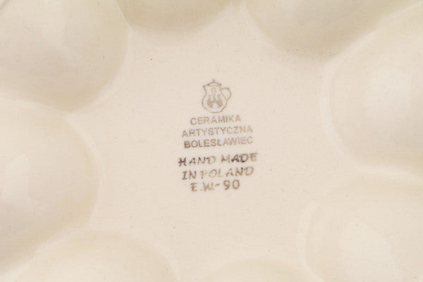 This Polish Pottery 9" Egg Plate - Easter Day is handmade and handpainted by the Ceramika Artystyczna factory in Boleslawiec, Poland.