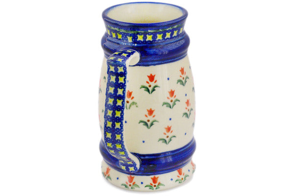 This Polish Pottery 30 oz Beer Mug - Cocentric Tulips is handmade and handpainted by the Ceramika Bona factory in Boleslawiec, Poland.