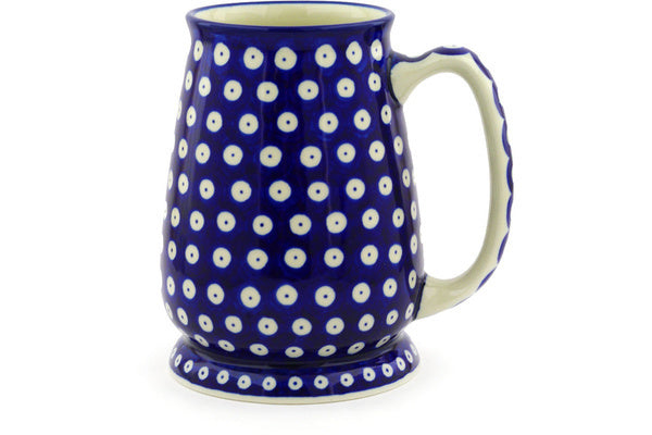 This Polish Pottery 34 oz Beer Mug - Blue Eyes is handmade and handpainted by the Ceramika Artystyczna factory in Boleslawiec, Poland.