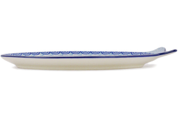 This Polish Pottery 9" Fish Shaped Platter - Blue Herring Waters is handmade and handpainted by the Ceramika Artystyczna factory in Boleslawiec, Poland.