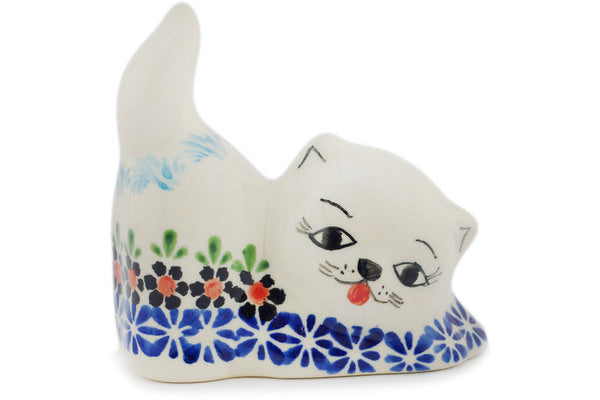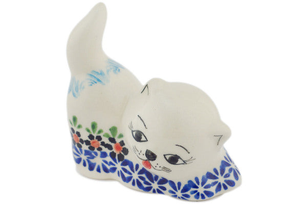 This Polish Pottery 3" Cat Figurine - Spring Country Trip is handmade and handpainted by the Ceramika Bona factory in Boleslawiec, Poland.