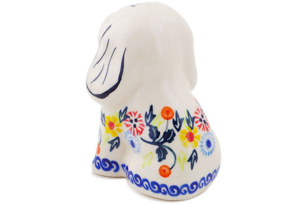 This Polish Pottery 4" Dog Figurine - Pastel Spring Wreath is handmade and handpainted by the Ceramika Bona factory in Boleslawiec, Poland.
