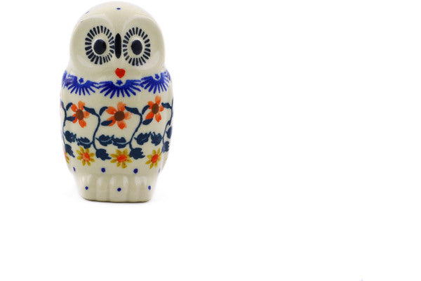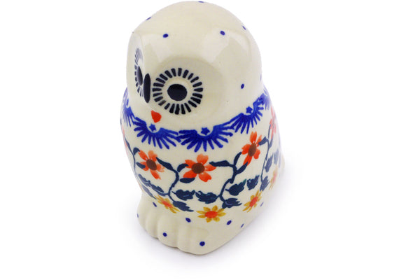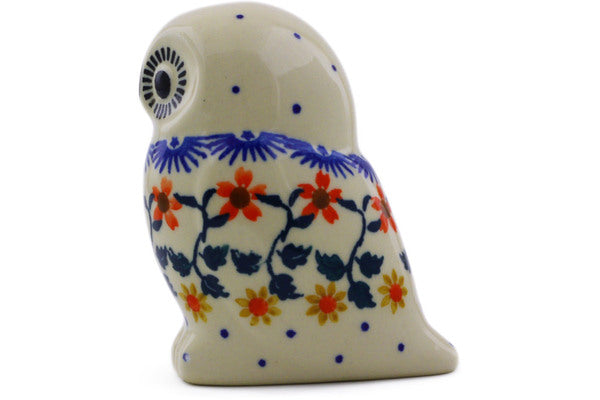 This Polish Pottery 4" Owl Figurine - Red Sunflower is handmade and handpainted by the Ceramika Bona factory in Boleslawiec, Poland.