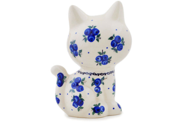 This Polish Pottery 6" Cat Figurine - Lovely Blueberries is handmade and handpainted by the Ceramika Bona factory in Boleslawiec, Poland.