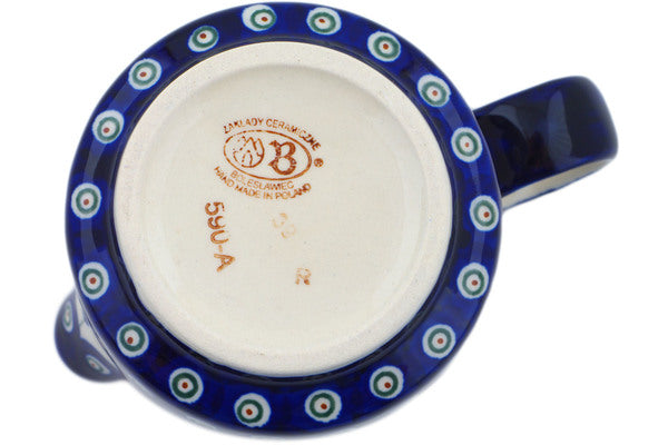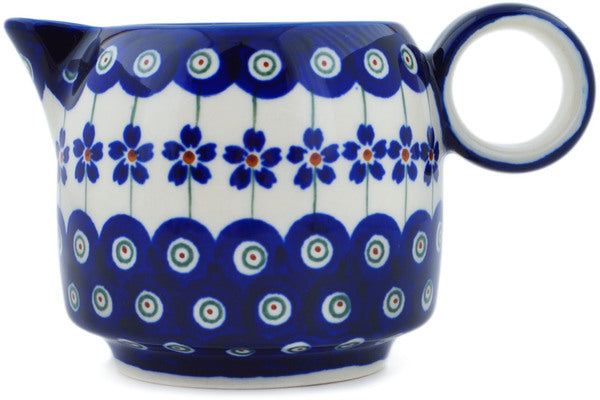 This Polish Pottery 9 oz Creamer - Flowering Peacock is handmade and handpainted by the Zaklady Ceramiczne factory in Boleslawiec, Poland.