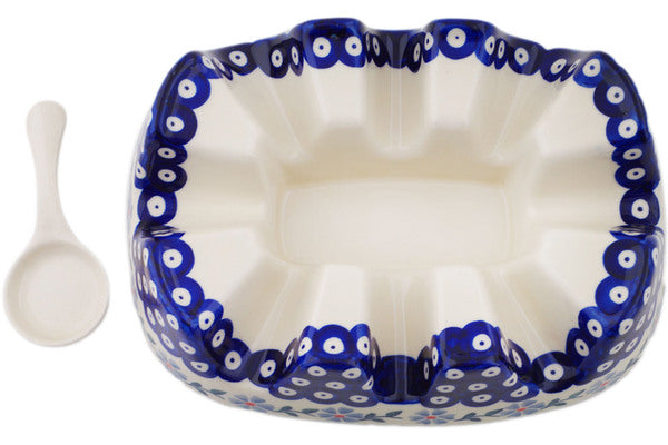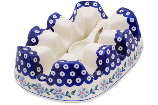 This Polish Pottery 10" Heater - Peacock Forget-Me-Not is handmade and handpainted by the Manufaktura factory in Boleslawiec, Poland.