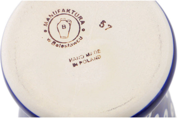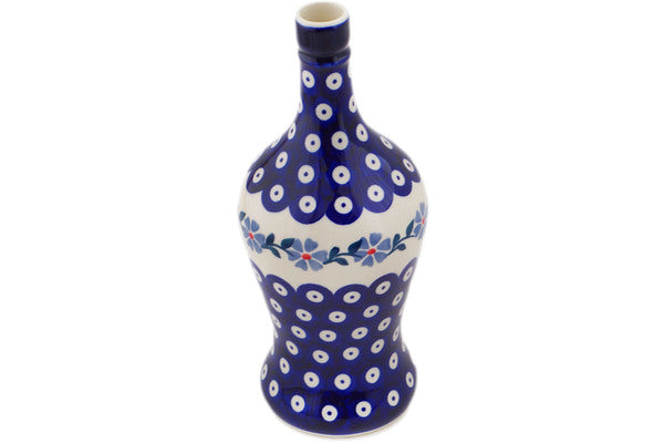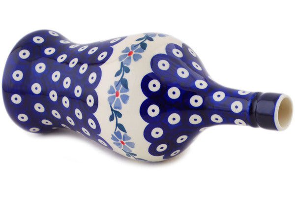 This Polish Pottery 22 oz Bottle - Peacock Forget-Me-Not is handmade and handpainted by the Manufaktura factory in Boleslawiec, Poland.