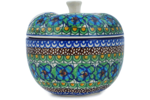 This Polish Pottery 5" Apple Shaped Jar - Mardi Gras is handmade and handpainted by the Ceramika Artystyczna factory in Boleslawiec, Poland.