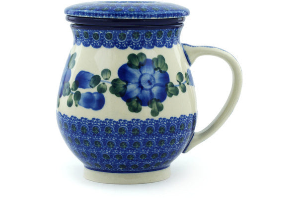 This Polish Pottery 14 oz Brewing Mug - Blue Poppies is handmade and handpainted by the Ceramika Artystyczna factory in Boleslawiec, Poland.