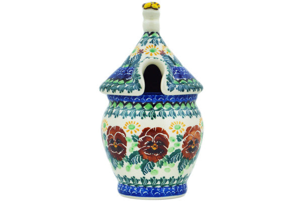 This Polish Pottery 12 oz Honey Jar - Brown Pansy is handmade and handpainted by the Ceramika Artystyczna factory in Boleslawiec, Poland.
