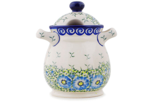This Polish Pottery 8" Jar with Lid and Handles - Gorgeous Morning Glory is handmade and handpainted by the Ceramika Bona factory in Boleslawiec, Poland.