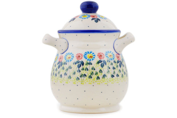 This Polish Pottery 8" Jar with Lid and Handles - Long-stemmed Beauties is handmade and handpainted by the Ceramika Bona factory in Boleslawiec, Poland.