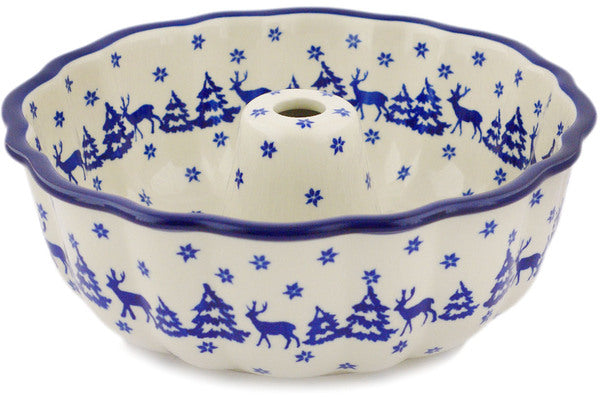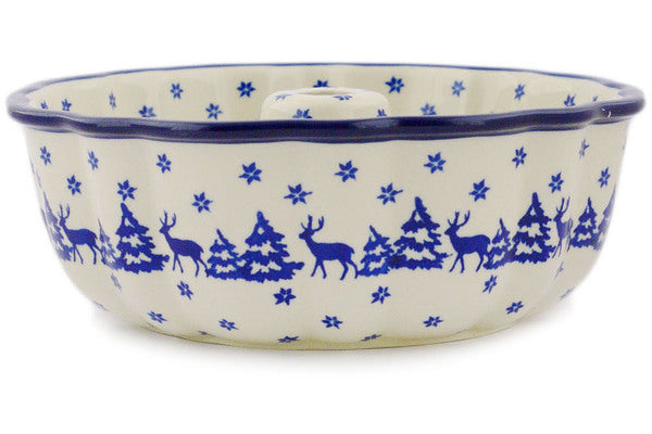 This Polish Pottery 10" Cake Mould - Winter Deer is handmade and handpainted by the Ceramika Artystyczna factory in Boleslawiec, Poland.
