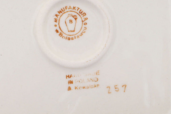 Manufaktura factory stamp | Polish Pottery HouseThis Polish Pottery 8" Chapel Candle Holder - Peacock is handmade and handpainted by the Manufaktura factory in Boleslawiec, Poland.
