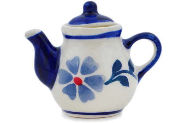 This Polish Pottery 2" Mini Tea Pot - Peacock Forget-Me-Not is handmade and handpainted by the Manufaktura factory in Boleslawiec, Poland.