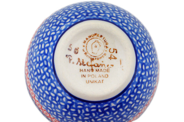Manufaktura factory stamp | Polish Pottery HouseThis Polish Pottery 2 oz Measuring Cup - Winter Sights is handmade and handpainted by the Manufaktura factory in Boleslawiec, Poland.