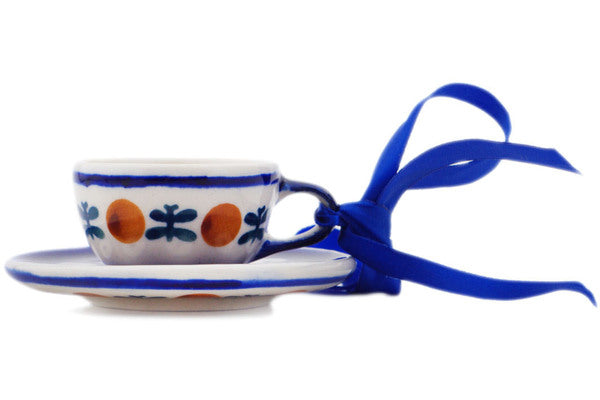 This Polish Pottery 3" Mini Cup and Saucer - Mosquito is handmade and handpainted by the Manufaktura factory in Boleslawiec, Poland.
