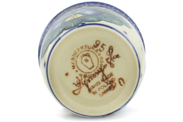 This Polish Pottery 3 oz Tumbler - Flower In The Grass is handmade and handpainted by the Manufaktura factory in Boleslawiec, Poland.
