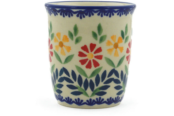 This Polish Pottery 3 oz Tumbler - Wave Of Flowers is handmade and handpainted by the Manufaktura factory in Boleslawiec, Poland.