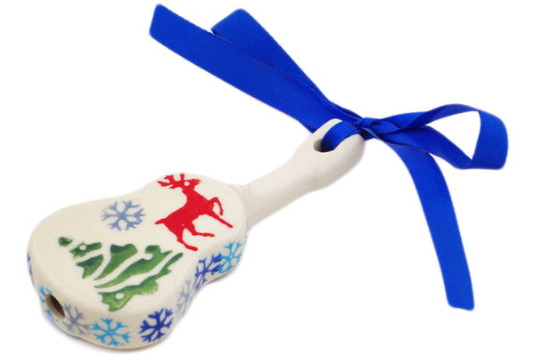 Manufaktura factory stamp | Polish Pottery HouseThis Polish Pottery 4" Guitar Ornament - Ring Around The Reindeer is handmade and handpainted by the Manufaktura factory in Boleslawiec, Poland.