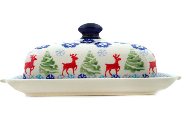 Manufaktura factory stamp | Polish Pottery HouseThis Polish Pottery 8" Butter Dish - Ring Around The Reindeer is handmade and handpainted by the Manufaktura factory in Boleslawiec, Poland.
