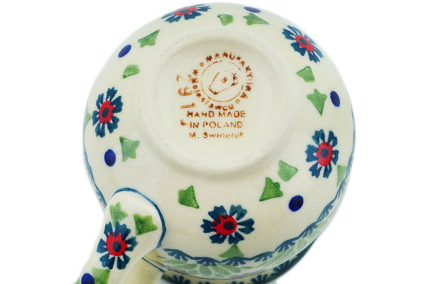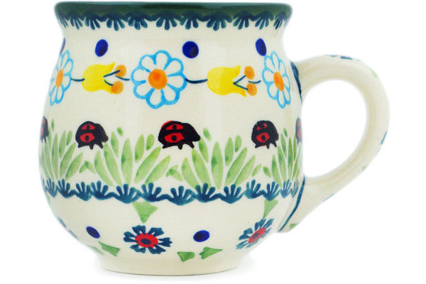 This Polish Pottery 8 oz Bubble Mug - Flowers And Ladybugs is handmade and handpainted by the Manufaktura factory in Boleslawiec, Poland.