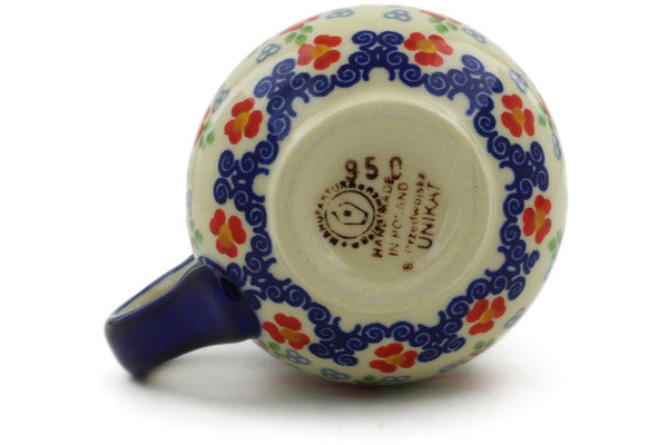 Manufaktura factory stamp | Polish Pottery HouseThis Polish Pottery 8 oz Bubble Mug - Red Chains is handmade and handpainted by the Manufaktura factory in Boleslawiec, Poland.