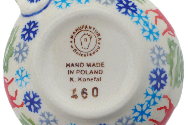 Manufaktura factory stamp | Polish Pottery HouseThis Polish Pottery 8 oz Bubble Mug - Ring Around The Reindeer is handmade and handpainted by the Manufaktura factory in Boleslawiec, Poland.