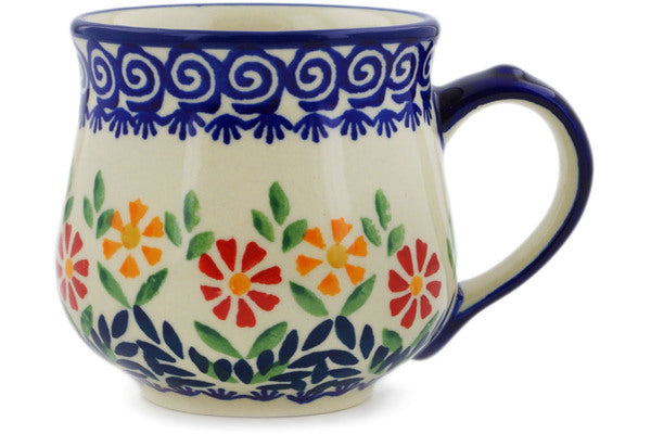This Polish Pottery 8 oz Bubble Mug - Wave Of Flowers is handmade and handpainted by the Manufaktura factory in Boleslawiec, Poland.