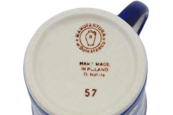 Manufaktura factory stamp | Polish Pottery HouseThis Polish Pottery 8 oz Mug - Peacock Forget-Me-Not is handmade and handpainted by the Manufaktura factory in Boleslawiec, Poland.