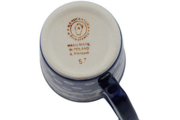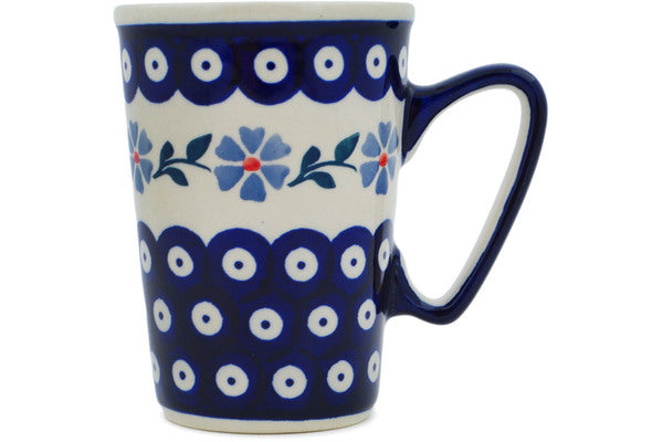 This Polish Pottery 9 oz Mug - Peacock Forget-Me-Not is handmade and handpainted by the Manufaktura factory in Boleslawiec, Poland.