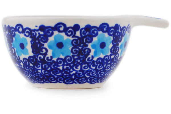 This Polish Pottery 2 oz Measuring Cup - Floral Sea is handmade and handpainted by the Manufaktura factory in Boleslawiec, Poland.