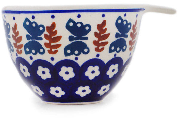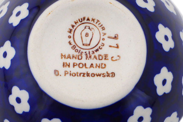 This Polish Pottery 8 oz Measuring Cup - Daisy Delight is handmade and handpainted by the Manufaktura factory in Boleslawiec, Poland.