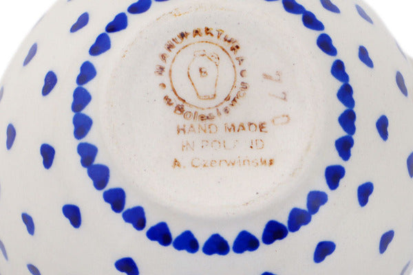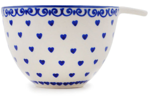 This Polish Pottery 8 oz Measuring Cup - Sea Of Hearts is handmade and handpainted by the Manufaktura factory in Boleslawiec, Poland.