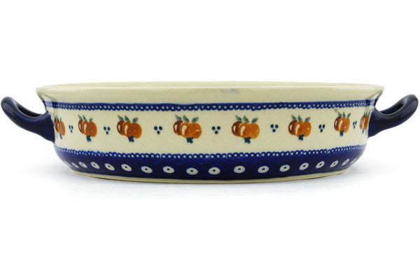 Zaklady Ceramiczne factory stamp | Polish Pottery HouseThis Polish Pottery 13" Round Baker with Handles - Country Apple Peacock is handmade and handpainted by the Zaklady Ceramiczne factory in Boleslawiec, Poland.