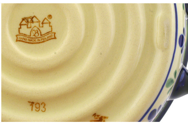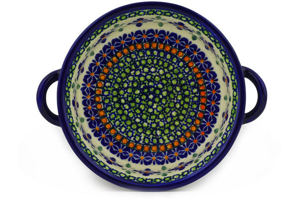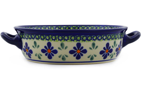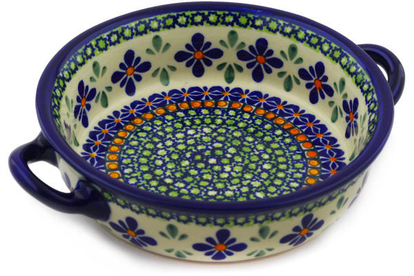 This Polish Pottery 7" Round Baker with Handles - Gingham Flowers is handmade and handpainted by the Zaklady Ceramiczne factory in Boleslawiec, Poland.