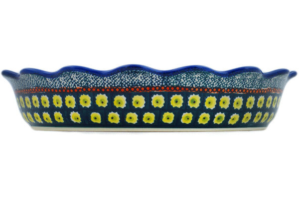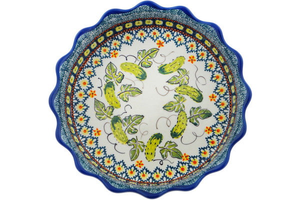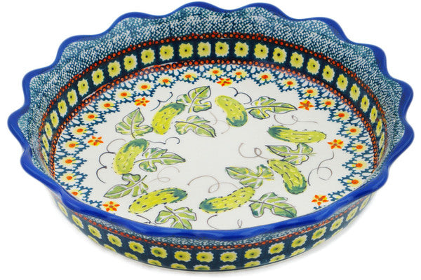 This Polish Pottery 8" Fluted Pie Dish - Cucumber Patch is handmade and handpainted by the Zaklady Ceramiczne factory in Boleslawiec, Poland.
