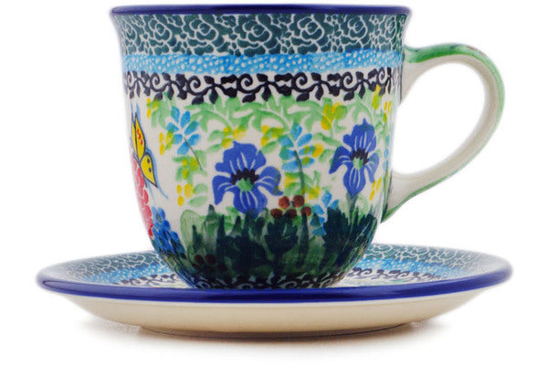 This Polish Pottery 10 oz Cup with Saucer - Spring Garden is handmade and handpainted by the Ceramika Artystyczna factory in Boleslawiec, Poland.