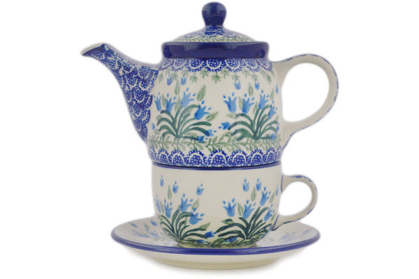 This Polish Pottery 17 oz Tea Set for One - Feathery Bluebells is handmade and handpainted by the Ceramika Artystyczna factory in Boleslawiec, Poland.