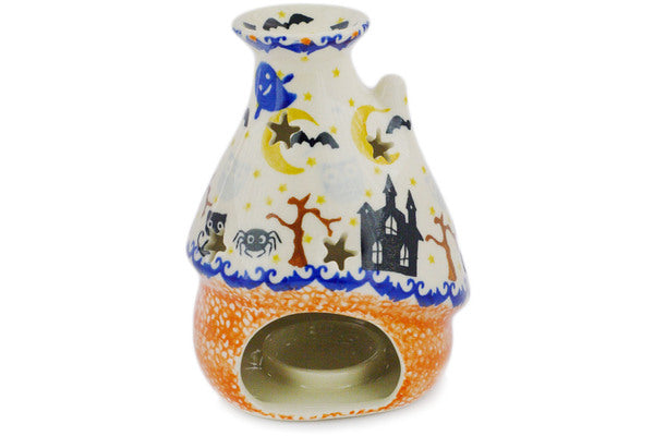 This Polish Pottery 5" House Shaped Candle Holder - Halloween Spooky Vibe is handmade and handpainted by the Ceramika Bona factory in Boleslawiec, Poland.
