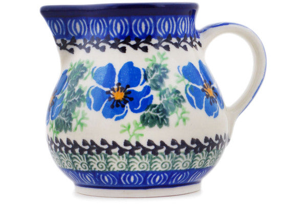 This Polish Pottery 7 oz Creamer - Scarlet Pimpernel Flower is handmade and handpainted by the Ceramika Artystyczna factory in Boleslawiec, Poland.