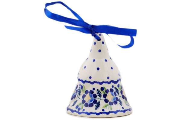 This Polish Pottery 4" Bell Ornament - Orange And Blue Flower is handmade and handpainted by the Manufaktura factory in Boleslawiec, Poland.