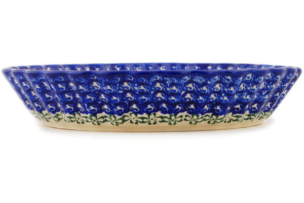 This Polish Pottery 10" Fluted Pie Dish - Fresh Happiness is handmade and handpainted by the Ceramika Bona factory in Boleslawiec, Poland.