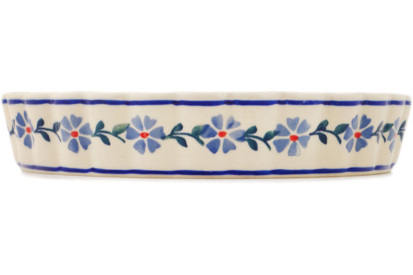 This Polish Pottery 9" Fluted Pie Dish - Peacock Forget-Me-Not is handmade and handpainted by the Manufaktura factory in Boleslawiec, Poland.
